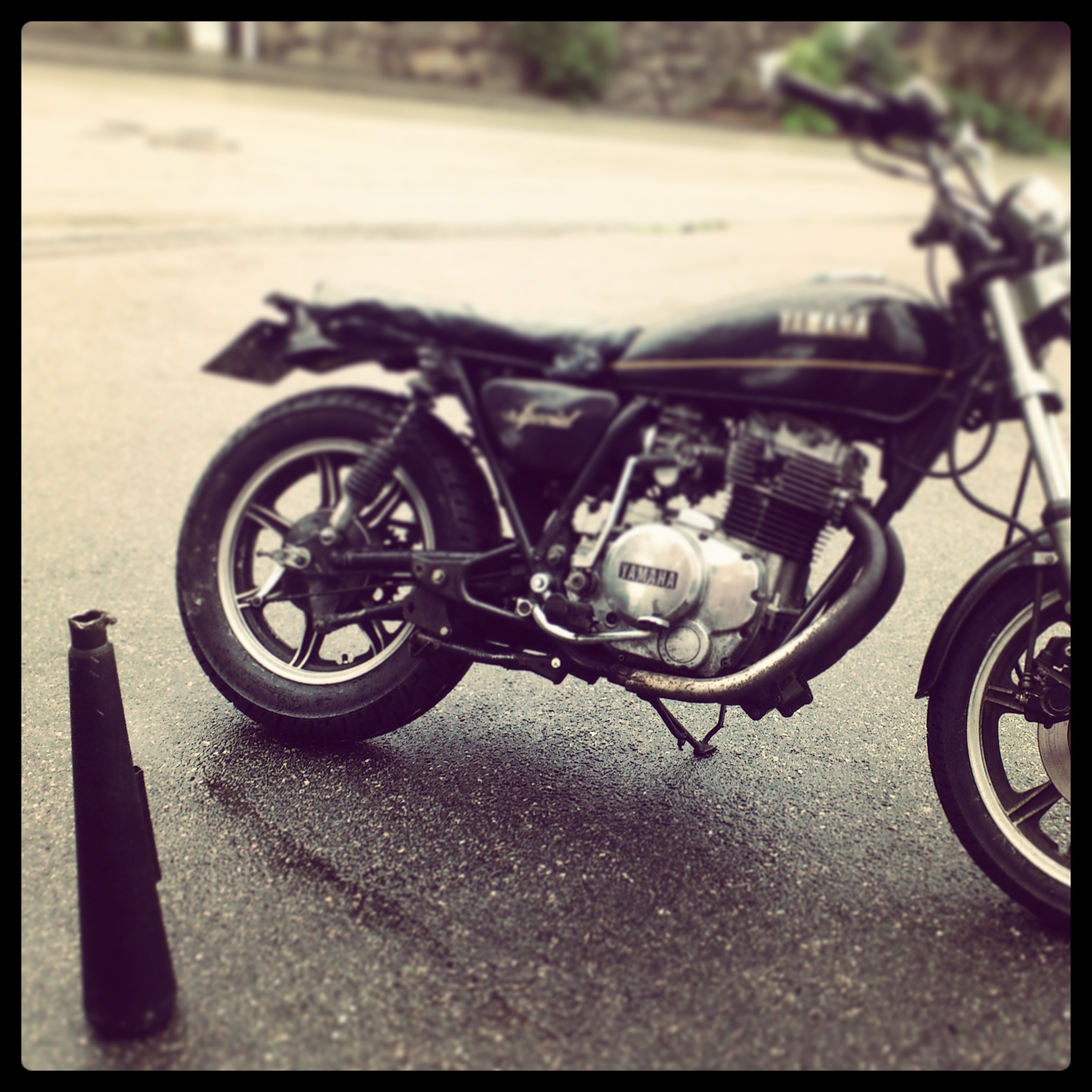 Lærte dette på en hard måte. Eg måtte kjøre en lengre tur for å kjøpe kjedespray. Flyr nedover motorveien i litt over 80 og plutselig hører at den chopperaktige lyden fra høgre eksospotte blei ett par hakk tøffere og råere…