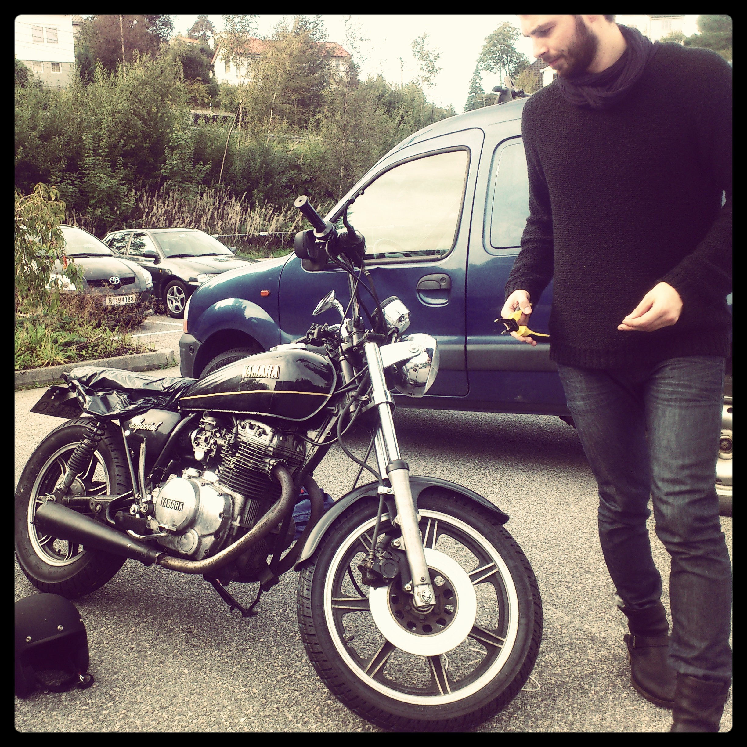 Så heldig som eg er gikk eg tom for drivstoff i et lyskryss kun 50 meter fra en bensinstasjon. Man har selvfølgelis en liten reserve å gå på, men glem ikkje å se ned i tanken når du parkerer sykkelen eller kjører forbi en bensinstasjon. Det kan også være en måte å bli kjent med noen på. Som i går da eg skulle fylle på, traff eg tilfeldigvis en kompis på atv og en han kjente. Når man kjører en spesiell sykkel, er det lett å komme i kontakt med andre MC folk. Lidenskapen for noe binder lett.
