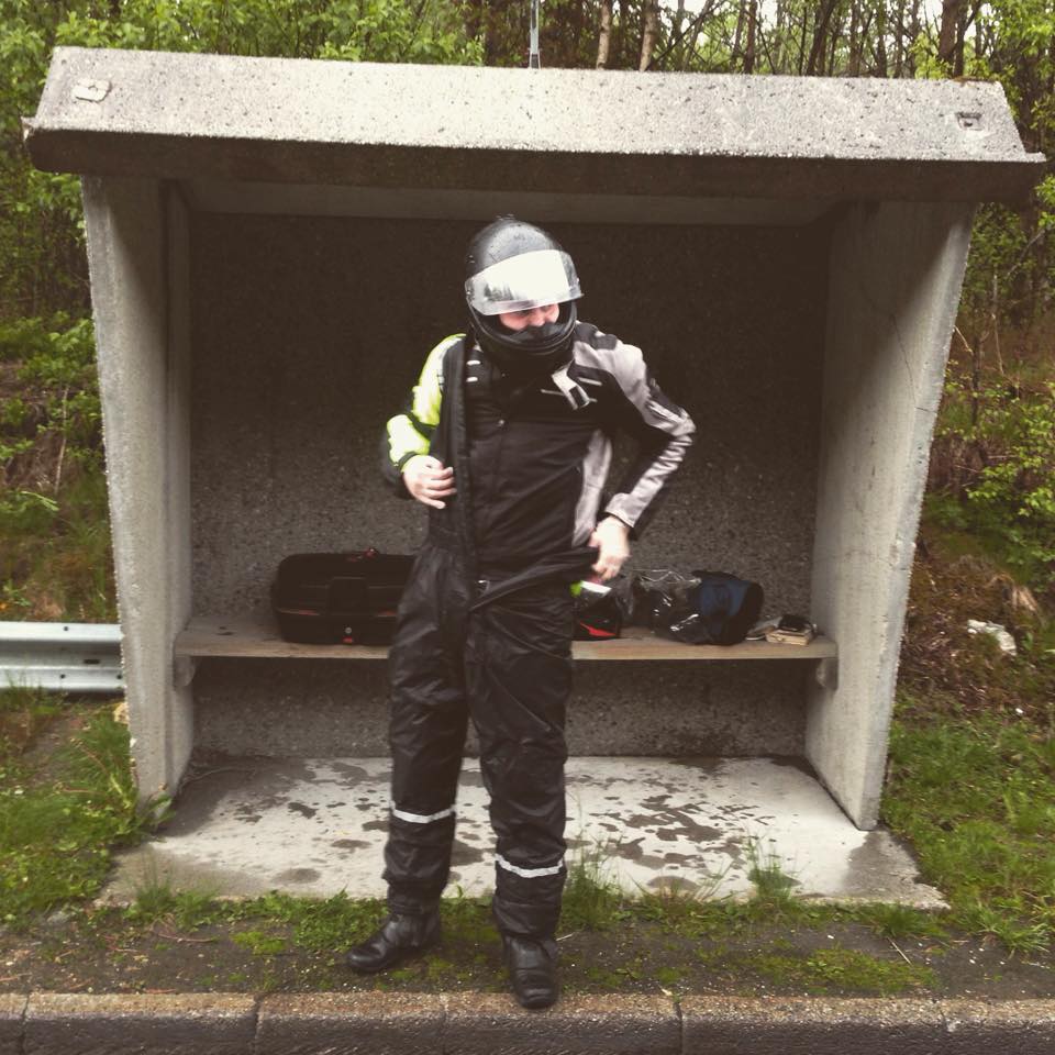 Det var definitivt annerledes å kjøre med bagasje og en mann bak på. Bremselengden blei betydelig lengre og det hjlap ikke at det regnet tre av fem dager. På første etappe var det ett par små skumle situasjoner, men eg lærte fort å planlegge kjøringen og holde riktig avstand til de som ligger foran. Eg har også blitt bedre på å pakke og velge riktig utstyr.