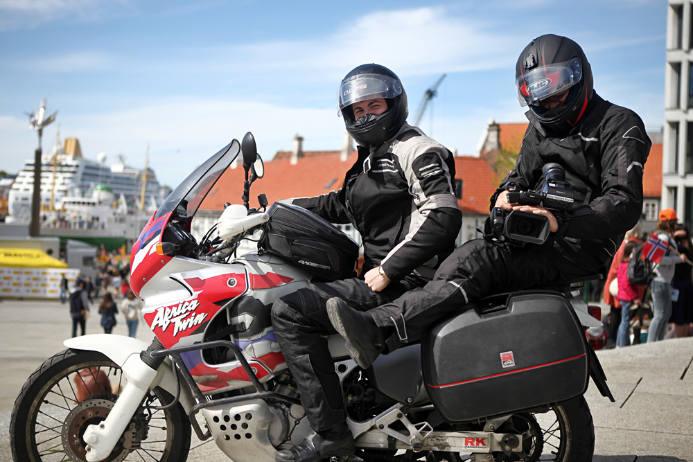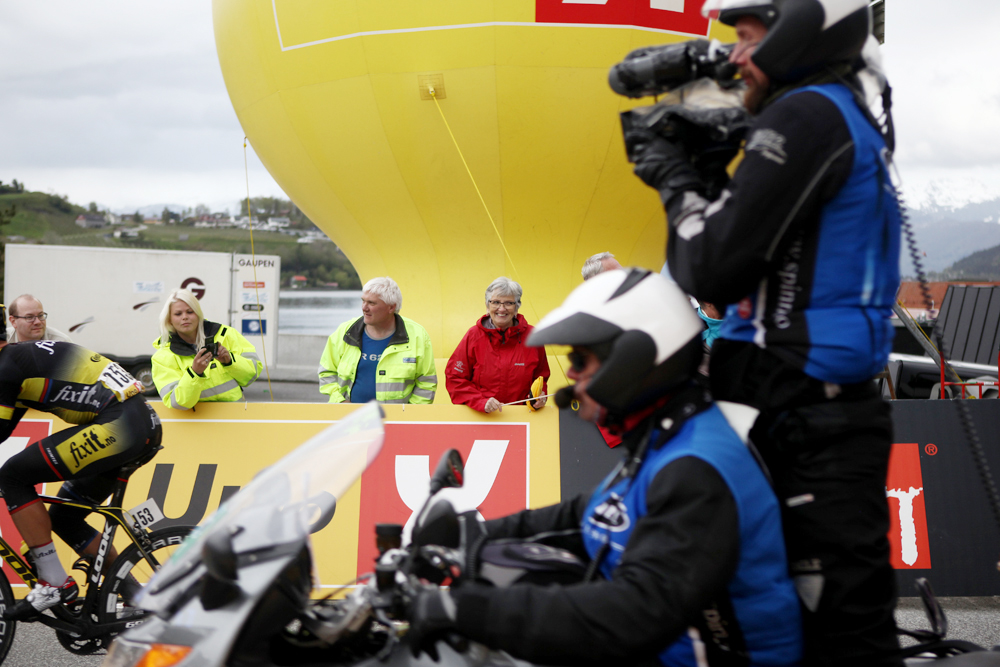 Fotografen eg skulle ha bak på heter Fredrik. En veldig dyktig film fotograf med mye erfaring. Vår oppdrag var å filme de stedene der rittet begynte og tok slutt, få med oss det som var spesielt på veien og det som sjer fra null punktet. Null punktet er et sted på veien der løpet egentlig begynner, vi skulle ligge så nært de syklistene som ga på og rykket fram fra resten. Det var et ordentlig kick! Etter å ha fått gode action bilder, var det bare å gi på og komme i mål som fort vi bare kunne for å levere opptakene. På ett par etapper måtte vi langt foran rittet, gjennom tettsteder, så fort vi bare kunne. Masse folk på vegkanter som roper og vinker med flagget. Ingen fare for trafikk i motsatt retning eller fra sidene. MC vaktene og politiet gjor en fatastisk jobb.